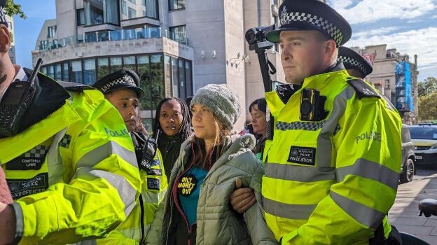 La Policía británica ha detenido este martes a Greta Thunberg mientras participaba en una manifestación contra los combustibles fósiles cerca de un prestigioso hotel del centro de Londres donde se alojaban ejecutivos de empresas petroleras.