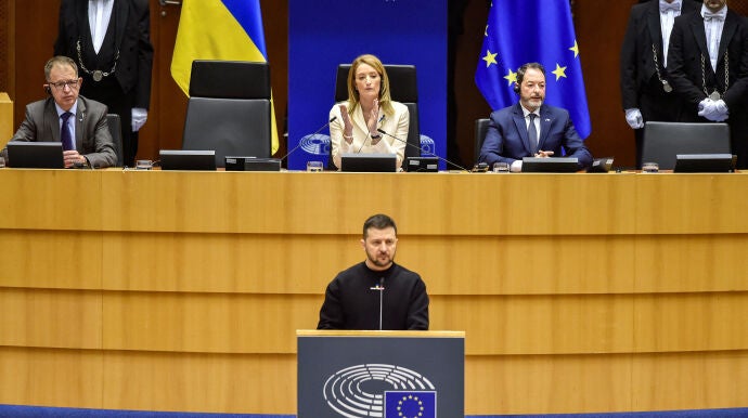 Un mensaje que ha repetido la presidenta del Europarlamento, Roberta Metsola, en un discurso previo al de Zelenski: "Estaremos con vosotros el tiempo que sea necesario".