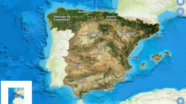 Al acceder a ella aparece un mensaje inicial explicando en qué consiste y detallando que esta herramienta también muestra los términos municipales. Una vez cerrado este aviso, es necesario indicar la ubicación para que conozca el punto exacto en el que nos encontramos. A golpe de click podemos hacerlo pulsando en la parte inferior derecha sobre el botón 'obtener ubicación actual'.