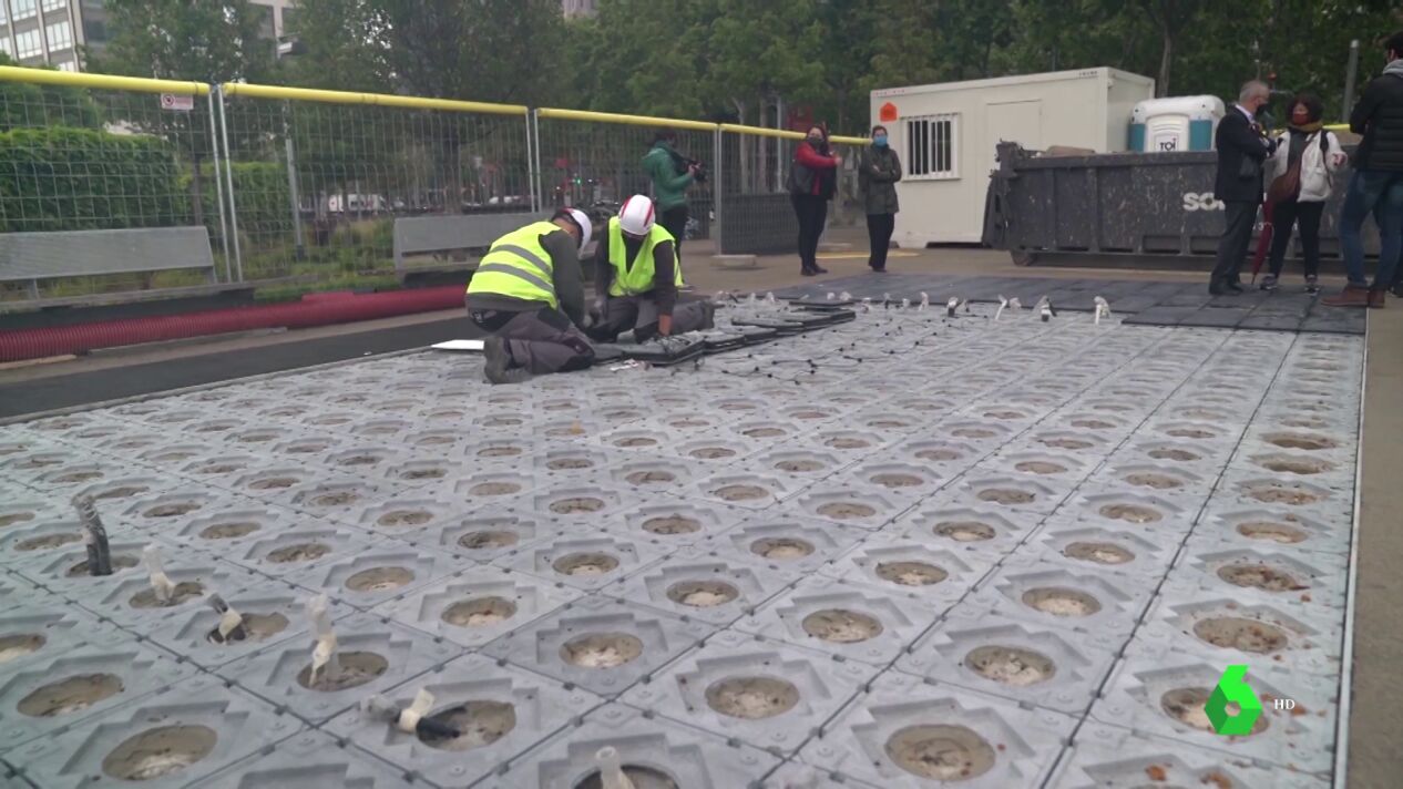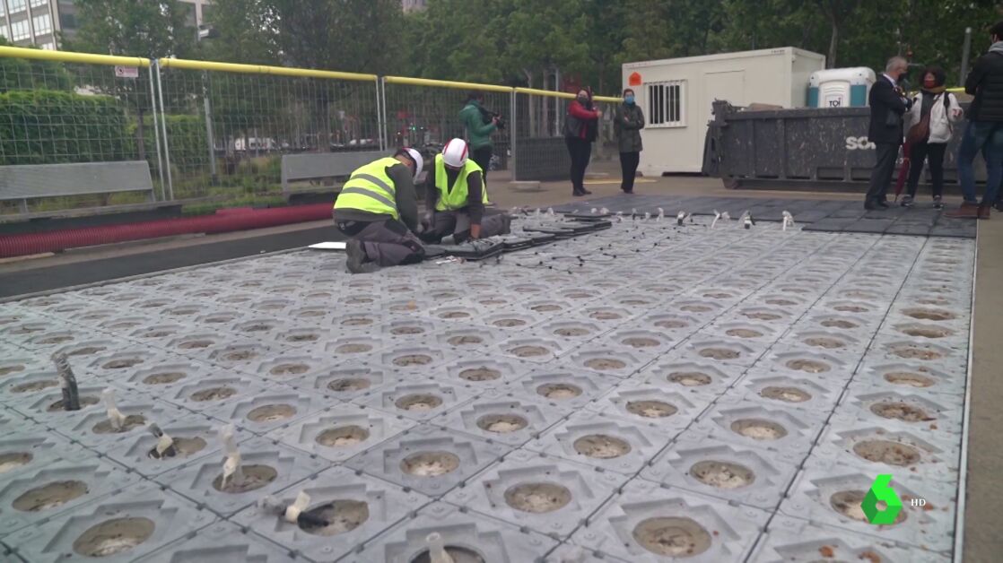 Barcelona ha convertido en realidad la idea de instalar placas solares en el suelo. De momento, es una prueba piloto que ocupa una extensión de 50 metros cuadrados. "Trabajamos con un sistema eléctrico, como si fueran baldosas, que se pueden cambiar fácilmente; luego tendríamos la placa y, lo más importante, la protección de esa placa que tiene que ser resistente para que se pueda pisar y antideslizante para que no provoque caídas", explica Eloi Badia, concejal de Emergencia Climática y Transición Ecológica del Ayuntamiento de Barcelona.