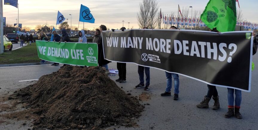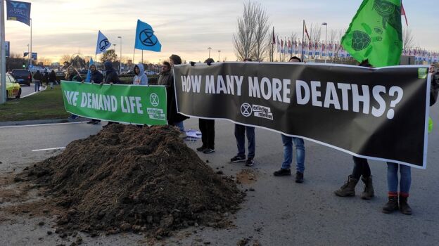 Un grupo de activistas vuelca un camión de estiércol frente a la Cumbre del Clima: "Estamos en la mierda"