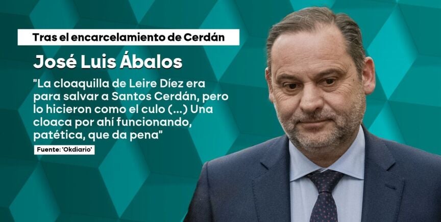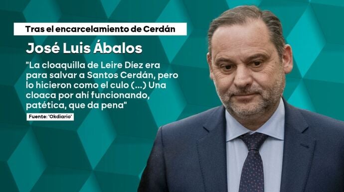 El exministro José Luis Ábalos ha afirmado que la operación llamada "la cloaquilla de Leire" fue diseñada para proteger a Santos Cerdán, pero que la ejecución fue deficiente. En una conversación con OKDIARIO, Ábalos explicó que, aunque algunos pensaron que él también se beneficiaría, la intención principal era salvar a Cerdán, quien está en prisión provisional por riesgo de destrucción de pruebas en el caso Koldo. Ábalos expresó dudas sobre el conocimiento de Pedro Sánchez respecto a los detalles de la operación. Además, comentó que no le sorprendió el ingreso en prisión de Cerdán, ya que la UCO lo identificó como líder de la trama. Ábalos defendió su propia situación legal, argumentando que no hay riesgo de fuga, ya que cumple con las obligaciones judiciales y tiene arraigo familiar.