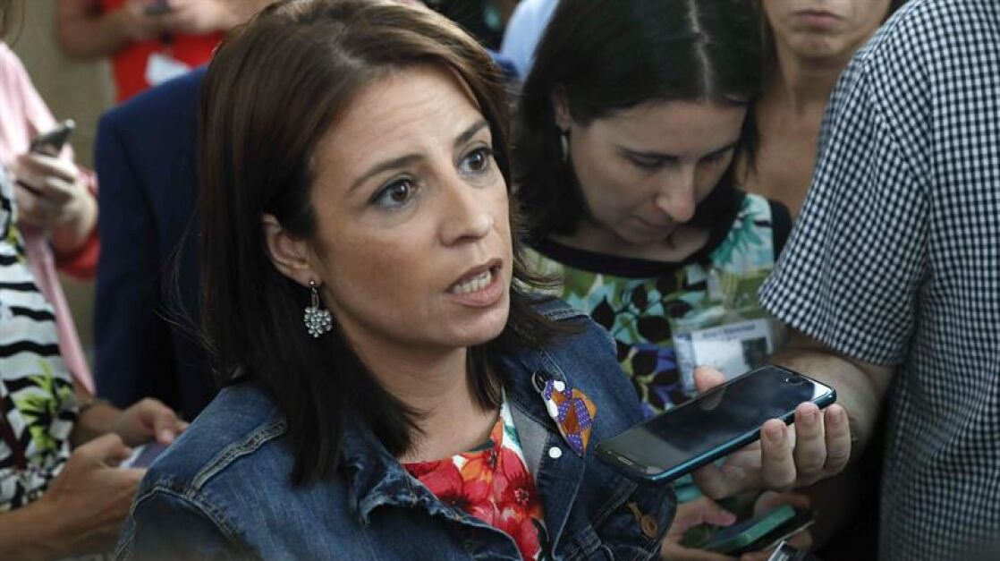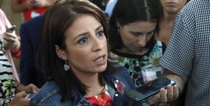 La portavoz del PSOE, Adriana Lastra, ha arremetido contra la "manifacha" del PP y Cs el pasado domingo en la plaza de Colón y les ha acusado de ir "de la manita de los nazis de Hogar Social, de la Falange y de Vox".
