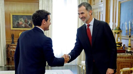 Tras reunirse con el rey en el marco de la ronda de consultas de cara a la investidura, Rivera ha señalado que, aunque Sánchez no les gusta, es el único que cuenta con los números para ser investido presidente. Al monarca le ha trasladado que Cs no facilitará la investidura de Sánchez, pero ejercerá una oposición "firme, leal y de Estado".