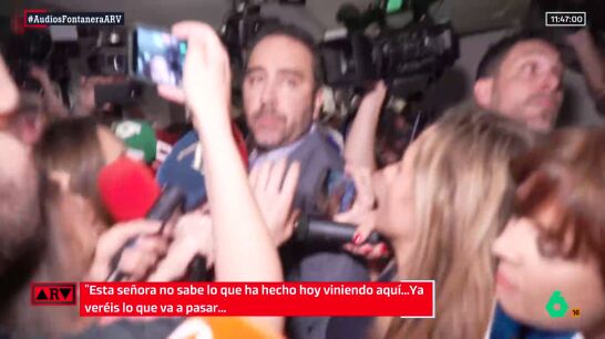 Víctor de Aldama ha irrumpido en la sala donde comparecía Leire Díez, ha estado a punto de llegar a las manos con Javier Pérez Dolset y lanzado amenazas contra Díez, Pedro Sánchez y Santos Cerdán. "Esta señora no sabe lo que ha hecho hoy con venir aquí. Ya lo veréis lo que va a pasar. Ya lo verá también el presidente del Gobierno y el señor Santos Cerdán", ha clamado.
