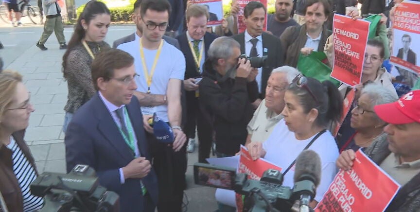 Porque unos vecinos de Madrid han rodeado a Almeida con la intención de buscar ayuda, de contarle sus historias para ser comprendidos. Se enfrentan al desalojo de sus viviendas, que son municipales. "Ya han empezado los desahucios de unas 60 familias", empieza contando una afectada al alcalde de Madrid. "Por una antigua deuda que estamos pagando", añade otra, que asegura que la EMVS "ha pasado de todo". "He hecho mil escritos, he hecho de todo y no me atienden".