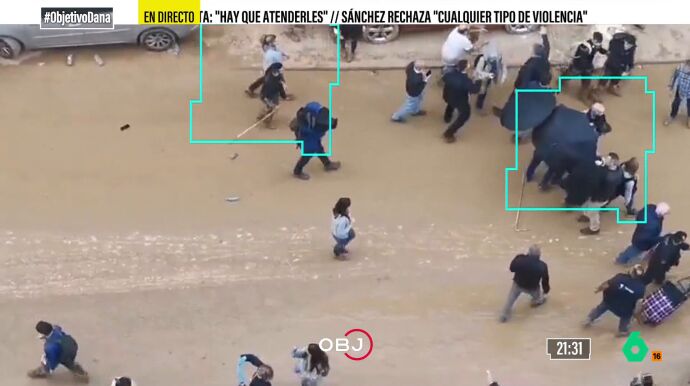A los primeros pasos de la comitiva, se encontraron con un lanzamiento de objetos que se saldó con el impacto de un palo en la espalda de Pedro Sánchez o la de una bola de barro contra la reina Letizia. Ante la crispación, la escolta del presidente activó el protocolo de seguridad y procedió a desplazarlo al Puesto de Mando Avanzado según fuentes del Gobierno han confirmado a laSexta.