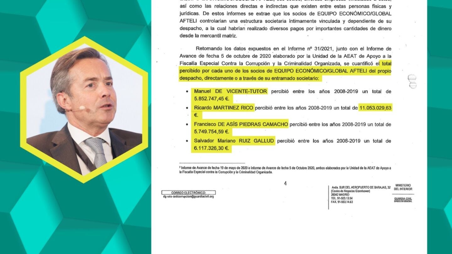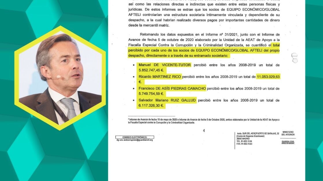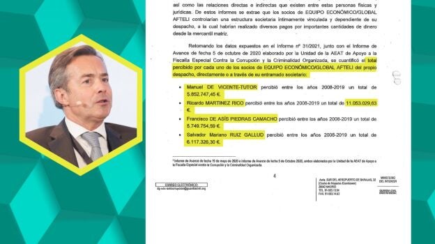 Unos pagos que se efectuaron a toda la cúpula de Equipo Económico. Salvador Ruiz Gallud, director de dicha empresa en la actualidad y exdirector general de la Agencia Tributaria con Aznar cobró un total de 6.117.000 euros.