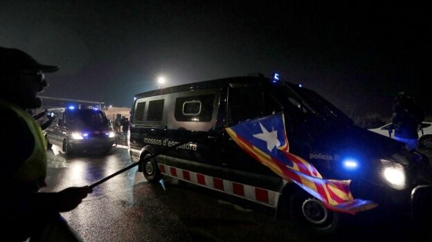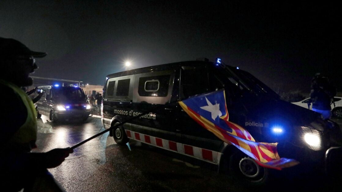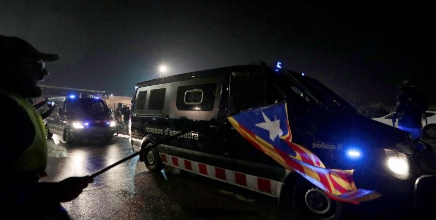 Fuerte dispositivo de los Mossos d'Esquadray Guardia Civil para trasladar a los políticos del 'procés' al centro penitenciario de Brians-2. Desde allí, loslíderes independentistas serán trasladados a Madrid. A las puertas de la prisión, centenares de personas han gritado "libertad" e "independencia" en señal de apoyo.