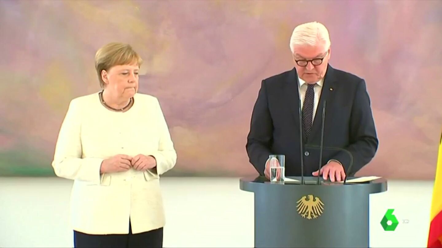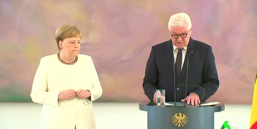 La canciller alemana, Angela Merkel, volvió a sufrir un visible temblor en manos y piernas durante el acto celebrado en el palacio de Bellevue, en Berlín.