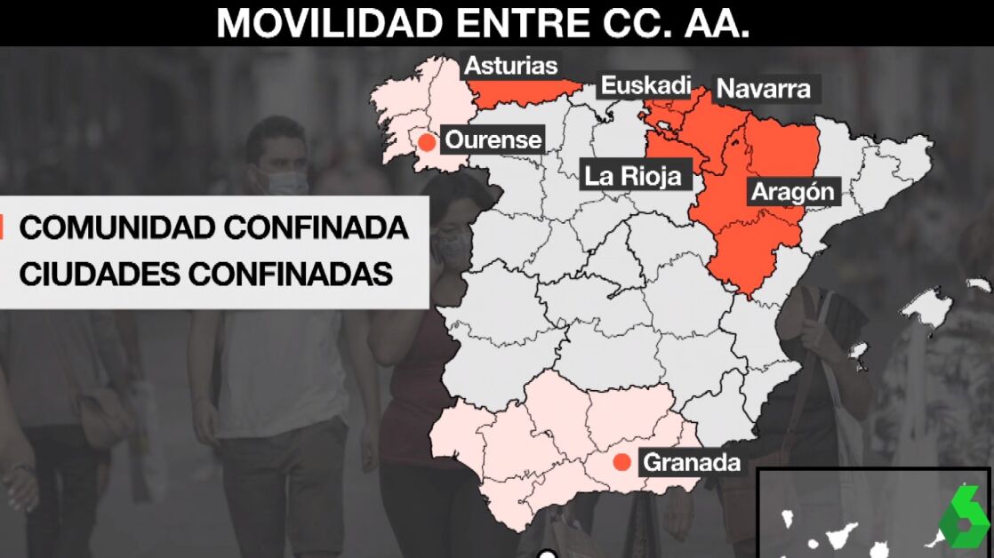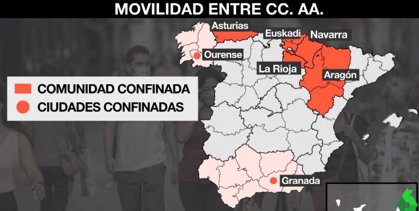 Por el momento, País Vasco, Aragón, Asturias, Navarra y La Rioja son las únicas regiones han aplicado un confinamiento perimetral en toda la Comunidad Autónoma. El resto de autonomías no ha aplicado esta medida, pero sí confinamientos en ciudades y zonas básicas de salud. A continuación, te explicamos cuál es la situación de cada una de ellas.