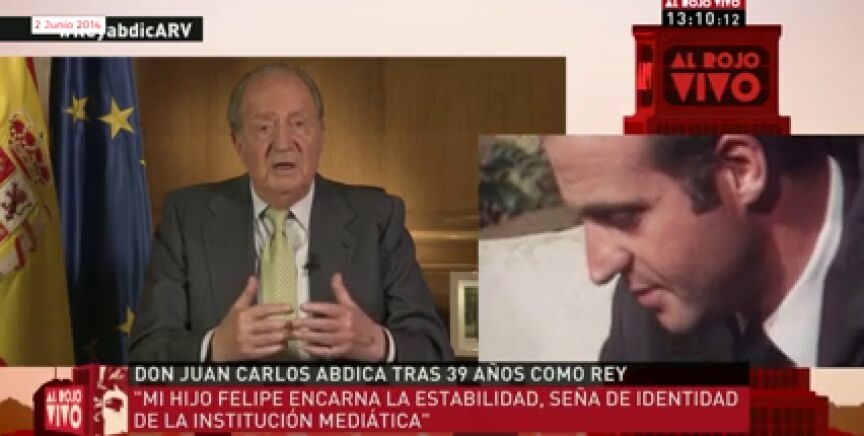 Tanto Al Rojo Vivo como laSexta Noticias vivieron en directo las declaraciones institucionales de Mariano Rajoy y del rey Juan Carlos I, en las que anunciaban la abdicación. Contaron de manera detallada el proceso de sucesión que se abría en España, un acontecimiento sin precedentes desde el comienzo de la democracia.