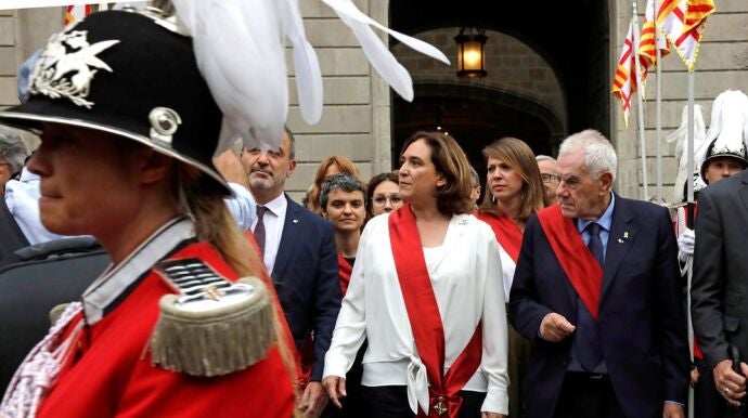 Ada Colaureedita su poder en la alcaldía de Barcelonaen una tensa investidura en la que anunció que recuperará el lazo amarillo.
