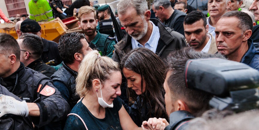Los reyes de España y Pedro Sánchez se encontraron con una enorme crispación en su visita a Paiporta este pasado domingo. Todo comenzó con lanzamientos de objetos: como el de un palo que impactó en la espalda de Pedro Sánchez o la de una bola de barro contra la reina Letizia.