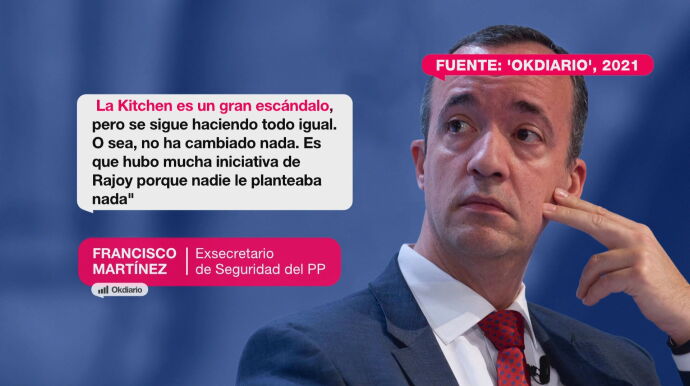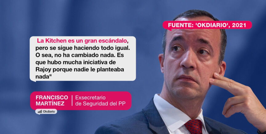 "Lo que yo veo es que, evidentemente, esto ya no solamente es que el PP esté dando la batalla ahí… el problema es que los primeros que se han puesto en contra son los propios jueces. La Kitchen es un gran escándalo, pero se sigue haciendo todo igual. O sea, no ha cambiado nada. Hubo mucha iniciativa de Rajoy porque nadie le planteaba nada", decía el ex secretario de Estado de Seguridad en la grabación extraída por 'OkDiario'.
