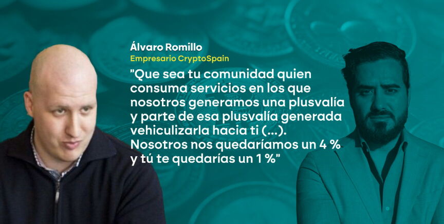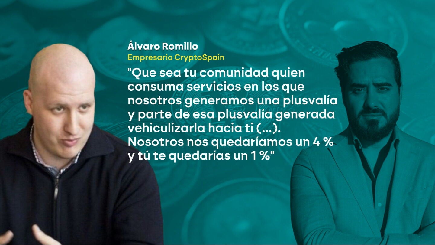 "Que sea tu comunidad quien consuma servicios en los que nosotros generamos una plusvalía y parte de esa plusvalía generada vehiculizarla hacia ti. Nosotros nos quedaríamos un 4% y tú te quedarías un 1%", explicaba Romillo a Alvise en los audios adjuntos a las conversaciones que ha aportado a la Fiscalía el fundador de CryptoSpain.