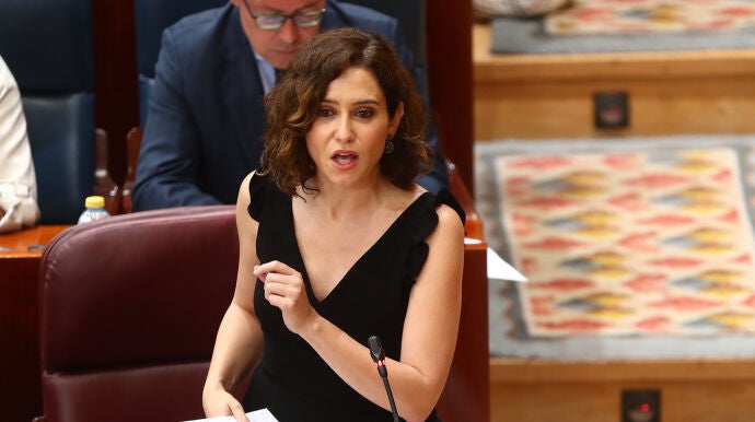 Isabel Díaz Ayuso ha asegurado que en Madrid "no se va a ir en burro como hace Colau" tras ser interpelada por Mónica García en referencia a las reivindicaciones del sector del taxi en la Comunidad de Madrid.