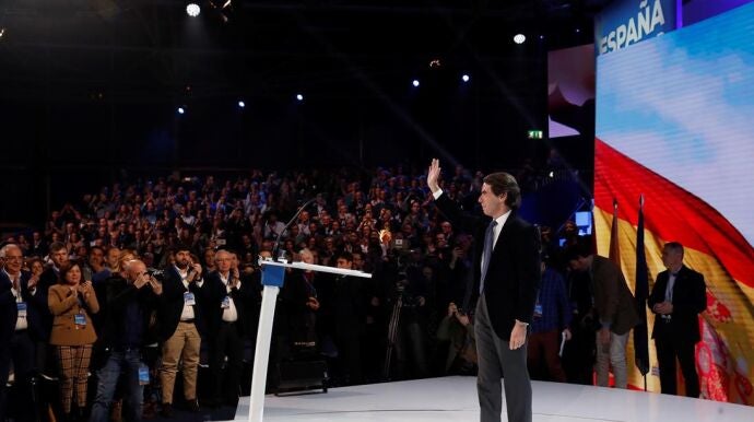 Era el protagonista. Todos en pie y gran ovación en el PP para recibir a José María Aznar.
