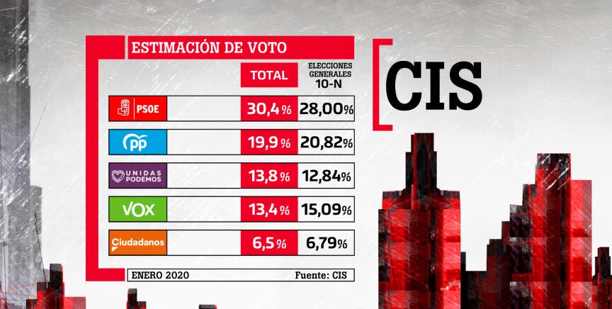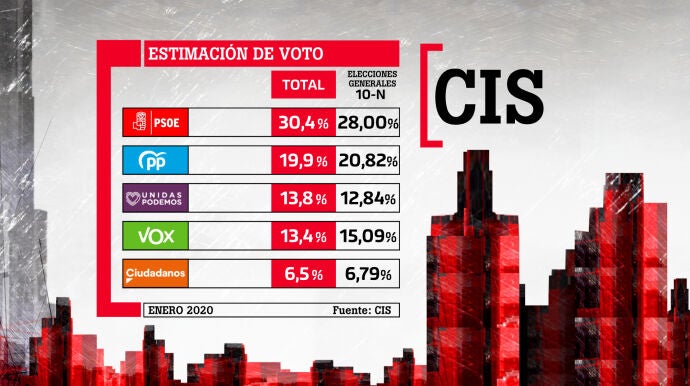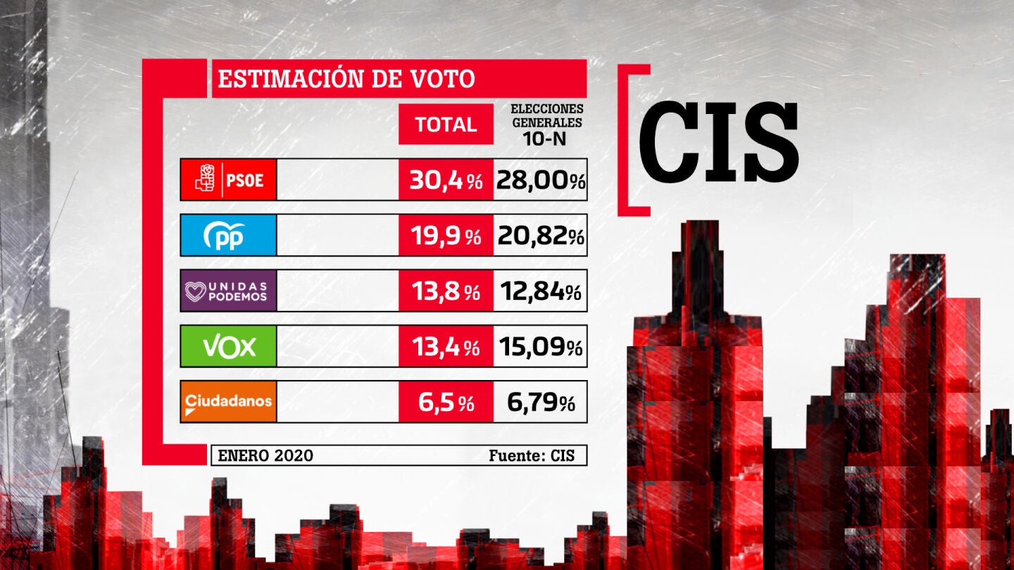 Se trata de la primera encuesta del CIS con intención de voto desde la investidura de Sánchez y la formación del Gobierno de coalición de PSOE y Unidas Podemos.
