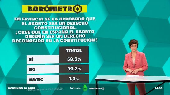Barómetro laSexta | El 60% de los encuestados apoya que el aborto sea un derecho constitucional como ha hecho Francia