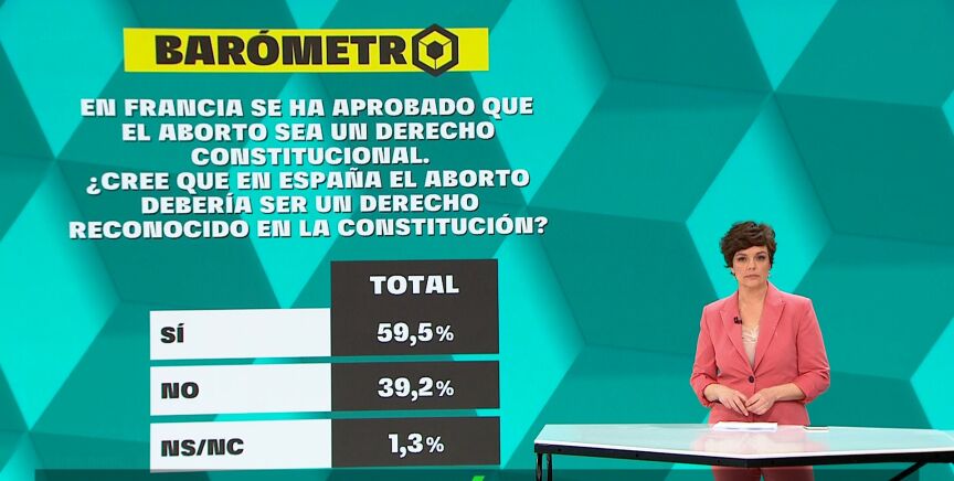 En España la mayoría de los ciudadanos defiende el aborto, según el barómetro InvyMark para laSexta: un 59,6% apoya que sea un derecho constitucional frente a un 40%. La semana pasada Francia aprobó la inscripción del aborto en la Constitución.