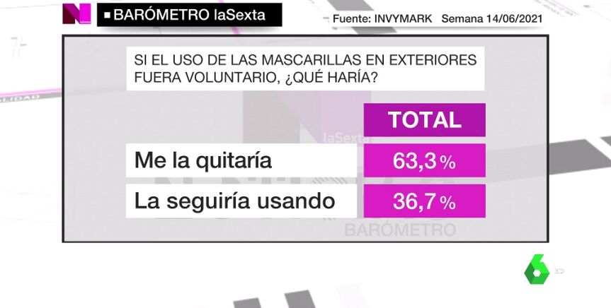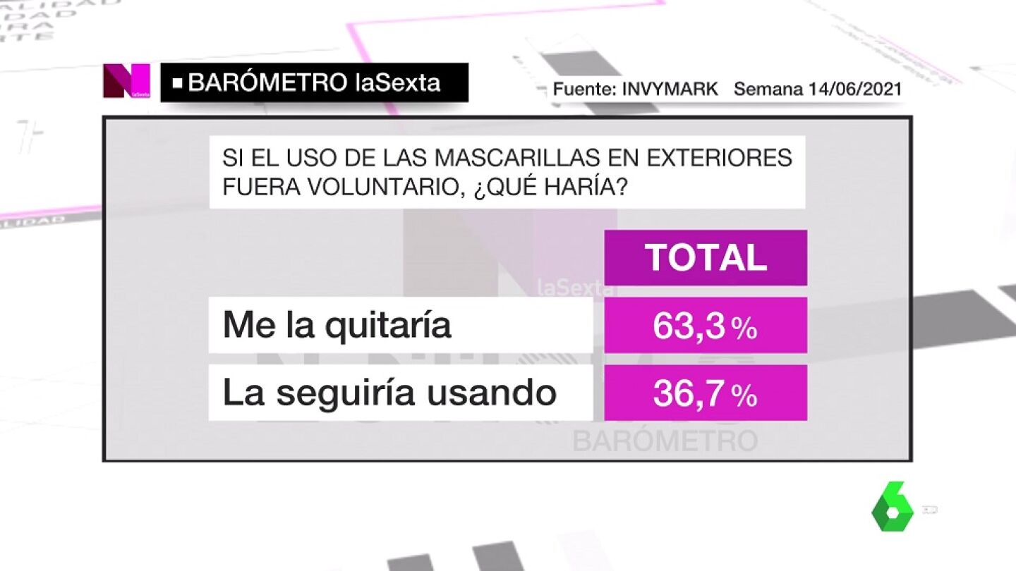 Barómetro laSexta | El 63,3% de los encuestados se quitaría la mascarilla en exteriores si su uso fuese voluntario