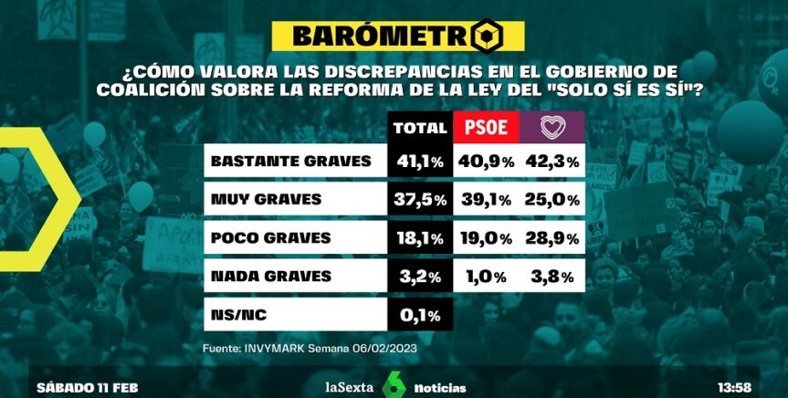 Barómetro laSexta | Cerca del 40% de los encuestados considera "muy graves" las discrepancias en el Gobierno sobre la ley del 'solo sí es sí'