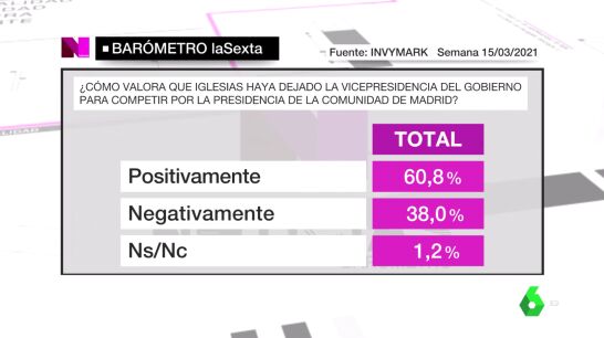 El barómetro de laSexta muestra unanimidad entre los votantes de las distintas formaciones acerca de la decisión de Pablo Iglesias de abandonar la vicepresidencia del Gobierno para presentarse a las elecciones en la Comunidad de Madrid.