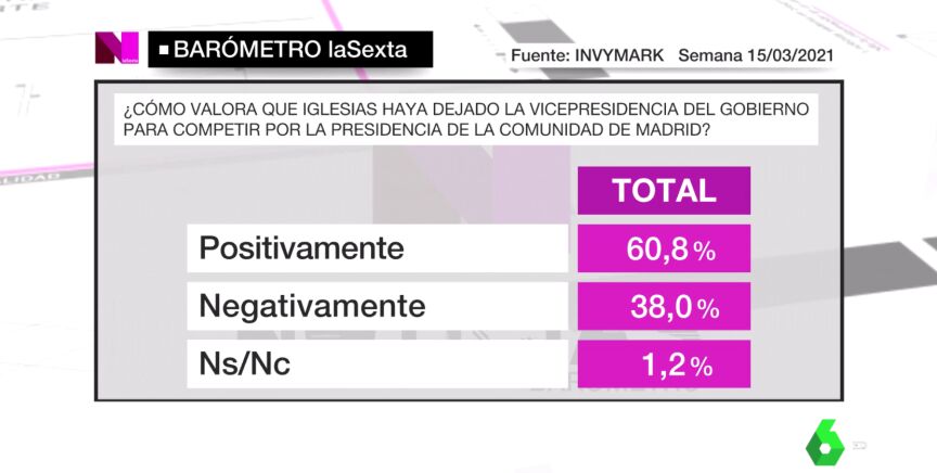 Barómetro laSexta | Más del 60% de los encuestados ven positiva la marcha de Pablo Iglesias del Gobierno para optar a la presidencia de la Comunidad de Madrid