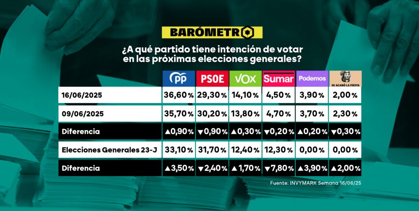 Barómetro laSexta | El PSOE baja un punto tras el caso Koldo y marca su peor dato en intención de voto en 2025