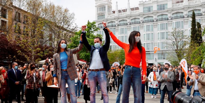 ¿Y si Ciudadanos lograse ese 5% de los votos? ¿Pactaría con el PP o con el PSOE? El 58,2% de los encuestados apuesta a que repetirá apoyo a Isabel Díaz Ayuso, por un 35,3% que cree que se decantaría por aupar a Ángel Gabilondo como presidente de la Comunidad de Madrid. Dos terceras partes de los votantes de Cs encuestados apuestan por ese apoyo a la suma PP-Vox.