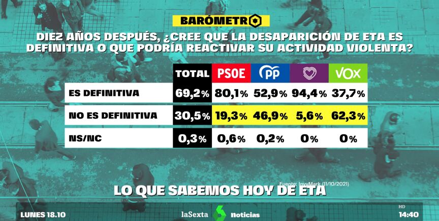 Barómetro de laSexta | Uno de cada tres españoles cree que ETA podría reactivar su actividad violenta