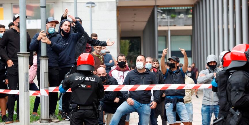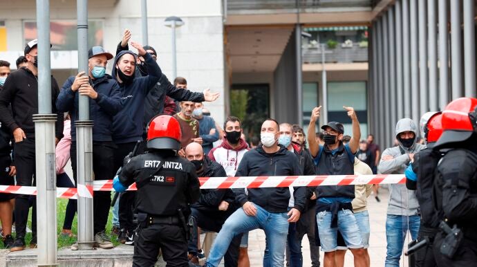 La Ertzaintza carga con balas de foam a grupos denominados antifascistas que se enfrentaron a los seguidores de Vox.