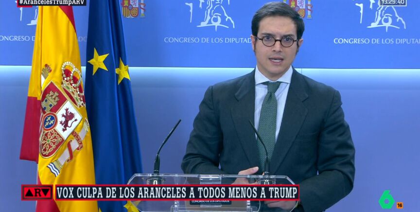 A pesar de que la guerra comercial de Donald Trump afecta a España, Vox sigue apoyando al presidente estadounidense. Santiago Abascal, líder del partido, evita culpar a Trump por los aranceles y, en cambio, responsabiliza a socialistas, 'populares' y Bruselas. En el Congreso, José María Figaredo, diputado de la formación de ultraderecha, también elude criticar a Trump. El parlamentario ultra sugiere que la Unión Europea debería negociar, aunque Bruselas ya ha intentado dialogar con Washington. Ante preguntas sobre la legitimidad de los aranceles, Figaredo se limita a señalar que es un hecho.