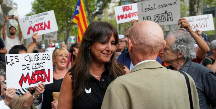 Laura Borràs reconoce que estuvo "fuera de lugar"la interrupción del minuto de silencio durante el homenaje a las víctimas de los atentados del 17-A en Barcelona, tras el que la propia líder de Junts se acercó a saludar a uno de los grupos que protestaban durante el acto en Las Ramblas.