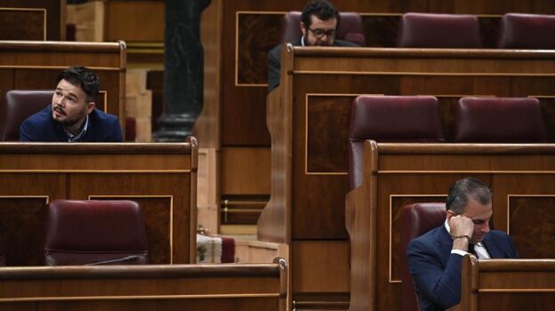 Nueva bronca en el Congreso de los Diputados, esta vez entre Gabriel Rufián y Javier Ortega Smith, que se ha referido repetidamente a los miembros de Esquerra Republicana como "golpistas" desde la tribuna.