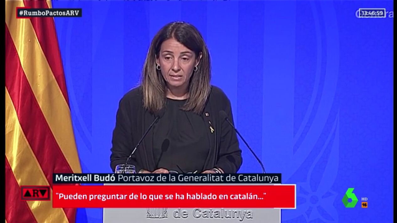 Meritxell Budó se ha negado a responder en castellano en una rueda de prensa. El surrealista argumento de la portavoz de la Generalitat, que los periodistas sólo pueden formular en castellano las mismas preguntas hechas previamente en catalán.