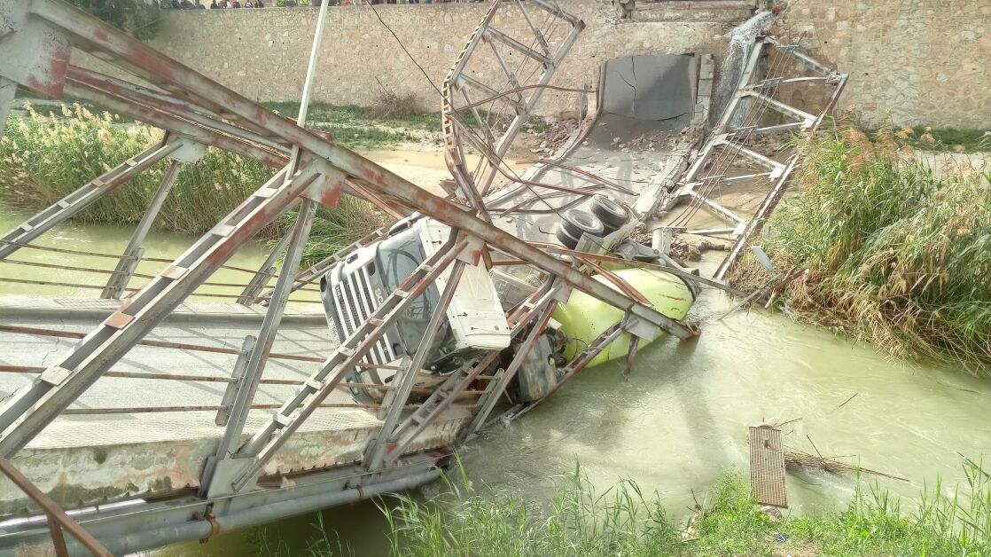 Un camión cae al Río Segura tras hundirse el puente sobre el que cruzaba