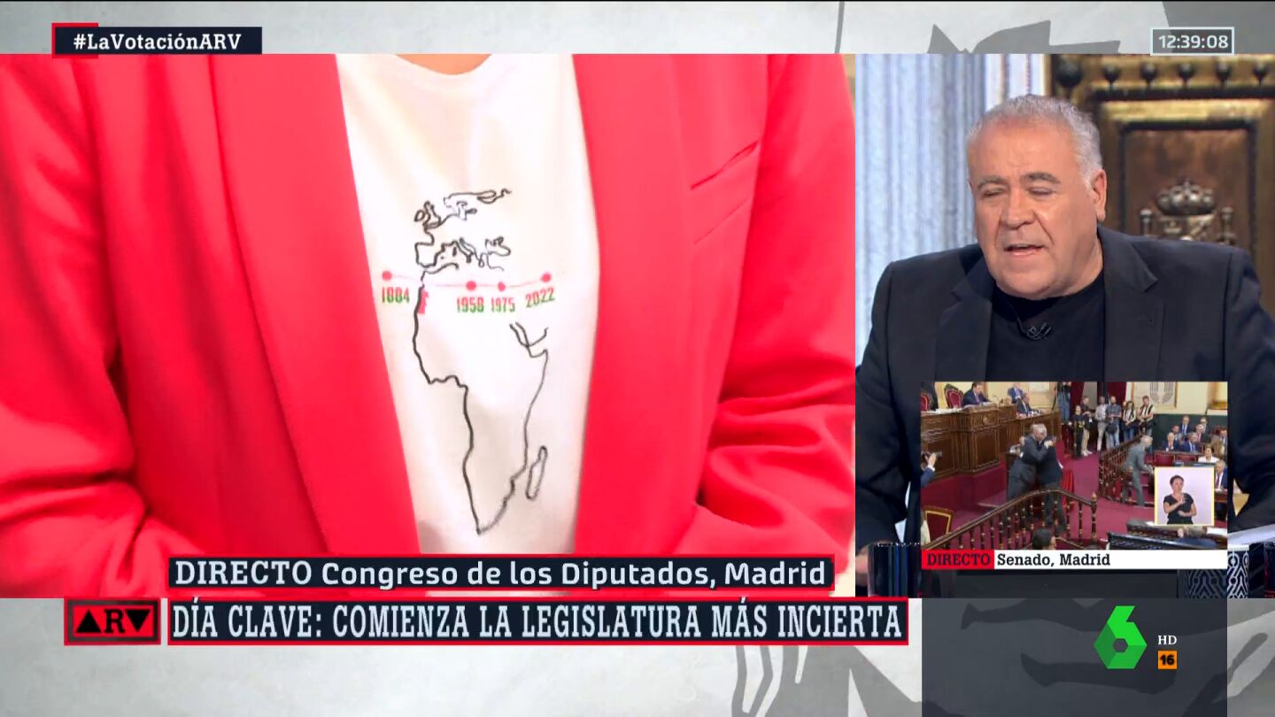 Pero a sus palabras acompañaba una imagen: una camiseta reivindicativa, como muchas otras que suele llevar la activista. "Es un mapa de África que señala muy bien el Sáhara Occidental", ha explicado. "[El del Sáhara] es un pueblo muy olvidado por el Estado español, que tiene que descolonizar el territorio", ha señalado.