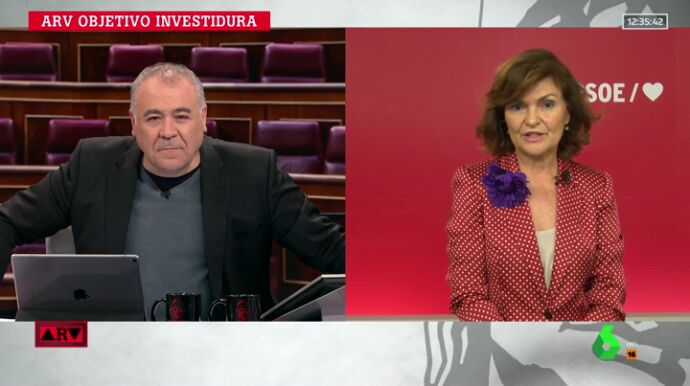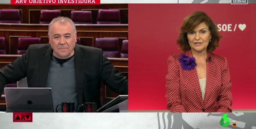 Carmen Calvo, vicepresidenta del Gobierno en funciones y a la cabeza de las negociaciones entre PSOE y Unidas Podemos, ha asegurado en la entrevista en Al Rojo Vivo que "Pablo Iglesias dijo, desde el minuto uno, que queríalas políticas de Trabajo junto con el Gobierno", algo que Pedro Sánchez ya rechazó.