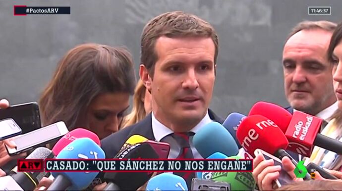 "No se puede pedir la abstención de Navarra Suma cuando al mismo tiempo se está pactando la mesa del Parlamento de Navara con Bildu", ha concluido Casado