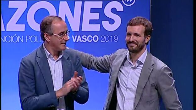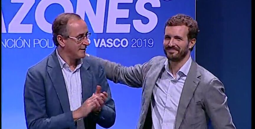 Una paz interna que ha sellado con un abrazo con Casado, que a su vez ha respaldado al PP de Euskadi. "Yo soy también del PP vasco", ha dicho, a lo que ha añadido que "el PP no tiene explicación ni razón de ser sin el PP vasco".