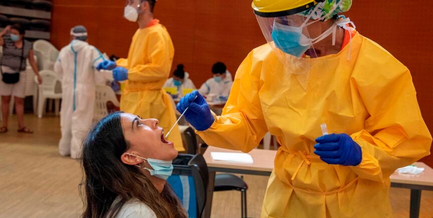 El riesgo de rebrote de covid en Cataluña, que mide el índice de crecimiento potencial del virus, se ha situado en 186,98, prácticamente igual que ayer, pero 13 puntos menos que hace cuatro días, aunque siempre en la franja de riesgo alto -más de 100-.