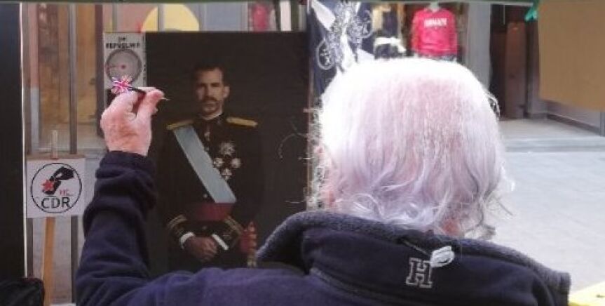 Los CDR organizan un puesto de lanzamiento de dardos contra una imagen del rey Felipe VI