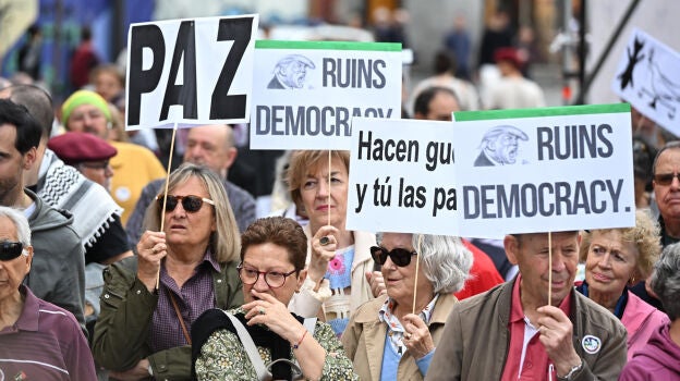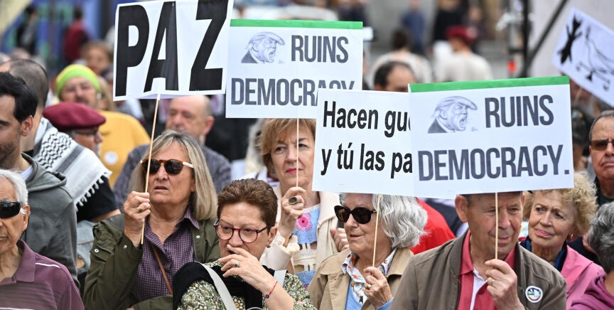 Durante la concentración, se han escuchado gritos de "¡No a la guerra!", "¡Palestina libre!" o "¡Nosotros sí tenemos otro plan, Trump y Netanyahu al tribunal penal!" y se han visto pancartas con lemas como 'Hacen guerras y tú las pagas', 'No olvidar Gaza' o 'Libertad para los presos políticos en Irán'.