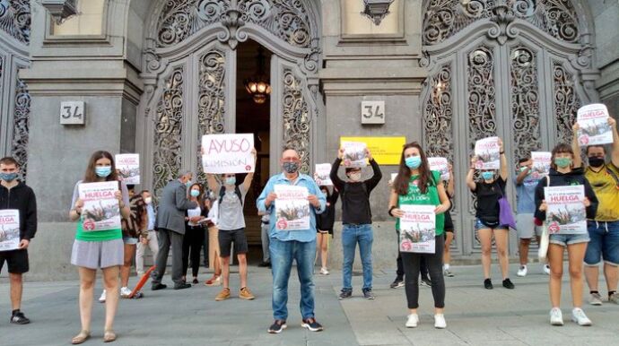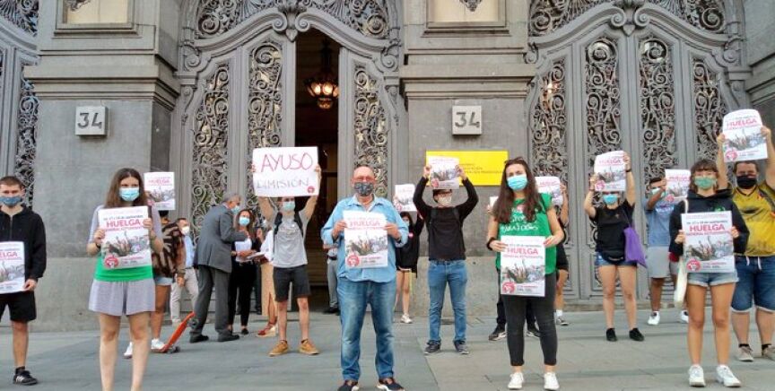 Este miércoles se han concentrado ante el Ministerio de Educación, situado en Madrid, para pedir al Gobierno que escuchen "el clamor de la comunidad educativa". Lo han hecho con pancartas en las que se podía leer "Ayuso dimisión" y "plan de rescate a la educación pública ya".