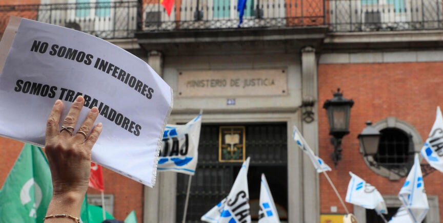 Tras los acuerdos retributivos alcanzados por el Ministerio con jueces, fiscales y letrados de la Administración de Justicia, los funcionarios exigen mejoras salariales de entre 350 y 430 euros al mes así como la negociación de cualquier ley que afecte a sus condiciones de trabajo.