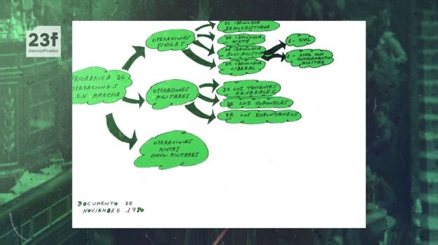 Los documentos del golpe de Estado fallido del 23 de febrero de 1981 ya están desclasificados y se pueden consultar en la página web de La Moncloa. Unos documentos que están empezando a salir a la luz y entre los que hay un croquis que fue efectuado por la Guardia Civil en los que se detallan los movimientos que estarían planeados para debilitar al Gobierno de Adolfo Suárez y facilitar de esa forma la caída de la democracia.