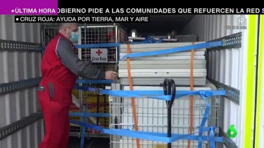 "Llevamos todo lo necesario: kit de descanso, que lleva un kit de higiene, una almohada hinchable, una funda de saco y elementos que hacen que a la gente le sea más confortable su estancia en un albergue en caso de emergencia", explica Ignacio García, técnico de Socorros y Emergencias de Cruz Roja.