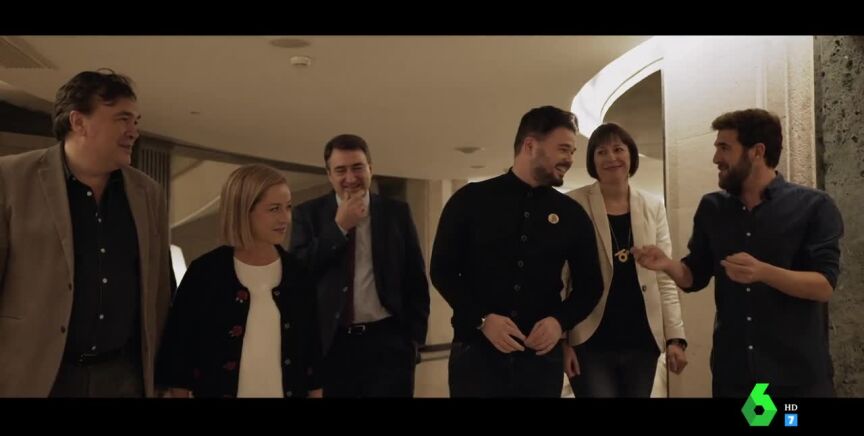 Gonzo sienta en una mesa a Esteban, Rufián, Pontón, Oramas y al flamante diputado de Teruel Existe, Guitarte, para debatir el modelo de España que persiguen cada uno de ellos y les pregunta si facilitarán la investidura de Sánchez tras su preacuerdo con Iglesias.